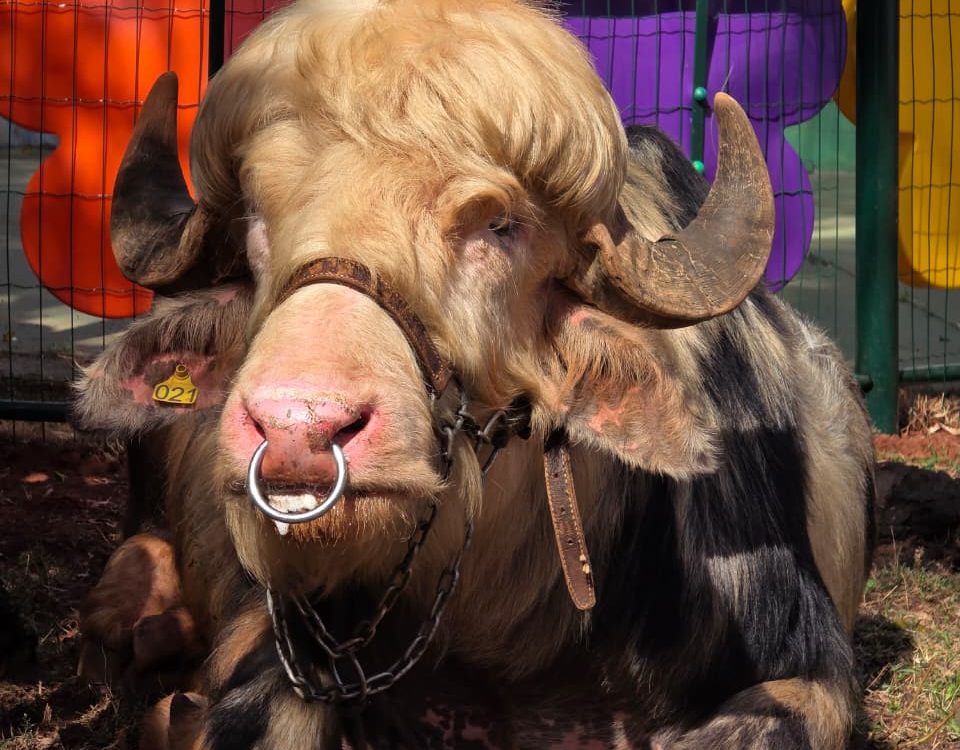 Búfalo Albino é atração da Fazendinha do Tio Claudinho no Rancho do Peãozinho