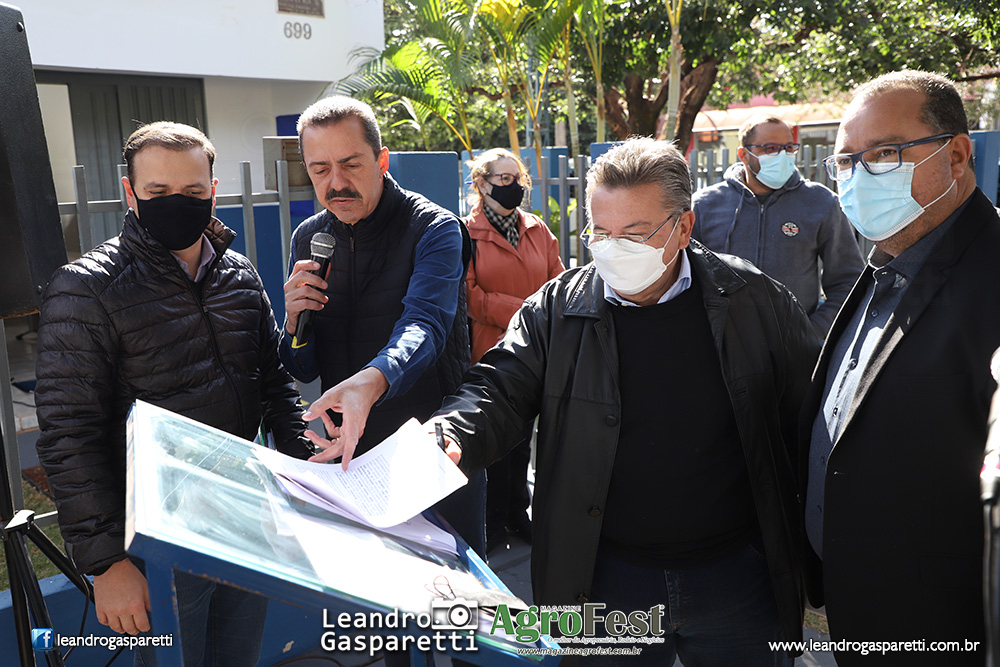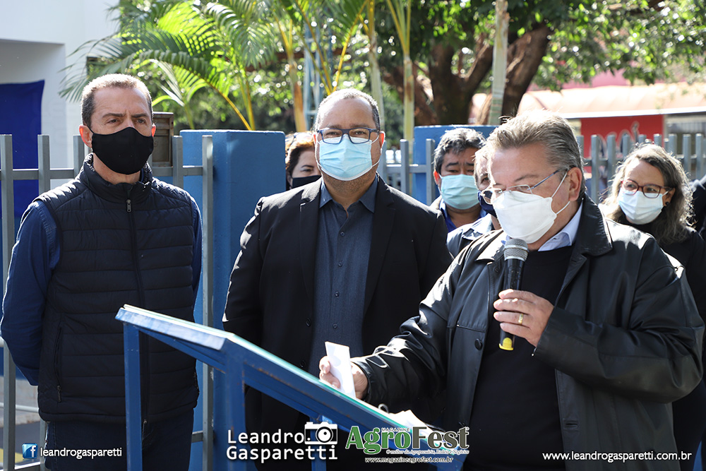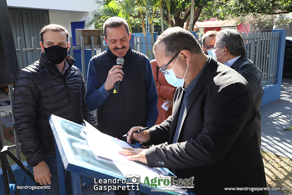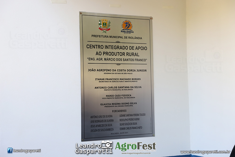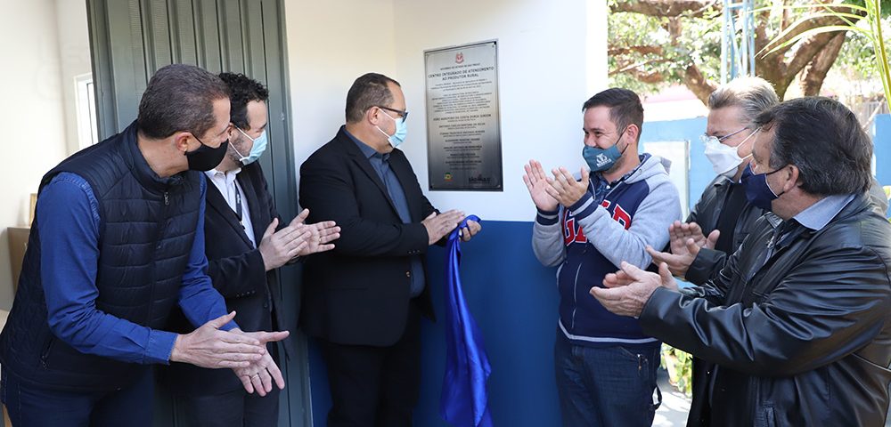 Foi inaugurado hoje o Centro Integrado de Atendimento ao Produtor Rural de Riolândia Márcio dos Santos Franco, espaço que fica nas dependências da Casa da Agricultura da CATI/CDRS e que abrigará ainda o Sindicato Rural e Senar, Dep. de Agricultura de Riolândia, Associação dos Produtores Rurais e conselhos municipais. Durante o evento também foi assinado convênio do município com a Secretaria de Agricultura para adesão ao Rotas Rurais, que visa o endereçamento no campo. O Centro recebeu investimentos da Prefeitura do município para reforma e otimização, com a implantação de sala de reuniões, cozinha operacional, sala de aula, sanitários e almoxarifado, além da revitalização dos demais ambientes. A ação faz parte do programa Cidadania no Campo – Município Agro. O evento contou com a presença do secretário de Agricultura e Abastecimento, Itamar Borges, do deputado e presidente da Alesp, deputado Carlão Pignatari, do coordenador da CATI/CDRS, Alexandre Grassi, do Coordenador da Defesa Agropecuária, Luís Bianco, e do prefeito de Riolândia, Toninho Santana. “Esse Centro é como se fosse um Poupatempo Rural e vai auxiliar muito os produtores de Riolândia. A participação do município no Rotas Rurais também tratará benefícios relacionados a coisas simples como recebimento de correspondência, mas também mais segurança, saúde, crédito e melhoria na logística”, disse Borges, que contou que nos próximos dias a Secretaria, junto ao Governador Doria e ao Vice-governador Rodrigo Garcia, anunciará novos programas, como o Segurança no Campo. A inauguração do espaço também foi ressaltada pelo presidente da Alesp. “Esses Centros são uma boa saída para as Casas de Agricultura do Estado, fazendo um atendimento próximo aos produtores”, afirmou Pignatari. Estiveram presentes também o vice-prefeito, Mário Fidioca; Glaucia, presidente da Câmara; Juvenal Borges da Silveira, presidente do Sindicato Rural; Estelito Rosa, presidente da Associação dos Produtores Rurais; Beto Marçal, presidente do Conselho Municipal Agrícola; Rodolfo, vereador; Cabo Walter, vice-prefeito de Votuporanga; Jair Nunes, vice-prefeito de Orindiúva; Eliane, do Sebrae; Rosenaldo, prefeito de Américo de Campos.